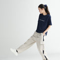 汗が乾きやすいドライ素材を採用しているので、ちょっとした運動や部活動のときにぴったり。ライトグリーンとネイビーの2色展開で、ボトムスに合わせてお選びいただけます。暑い季節もこれで熱く乗り切っていきましょう。