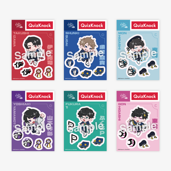 QuizKnockメンバーのA6ステッカーシートがランダムで1枚入っています。