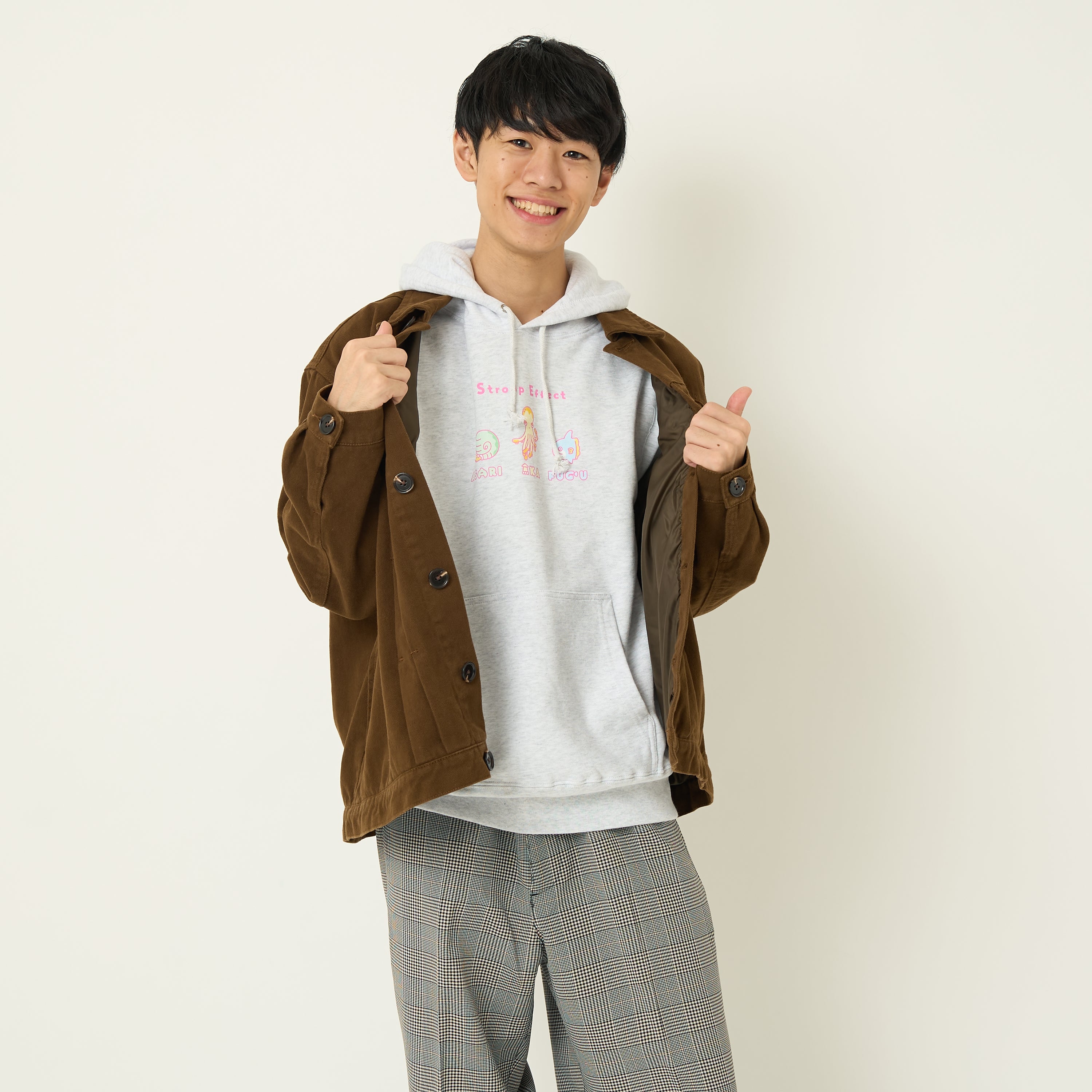 企画者 東問「大好きなQurioStoreの初企画商品です〜。学びがある!だけじゃなくて、普段からこんな服着たいな〜っていう案もないとなかなかデザインが決まらない難しさがありましたが、「ストループ効果モチーフでいこう」となってからは意外とあっさりとイメージが固まりました。困ったことにカラバリもたくさんあり、どれにするか悩ましい……。皆さんはいかがなさいますか?浪漫・防寒ばっちりのふぐとなっていますので、ぜひ手に取ってください!」