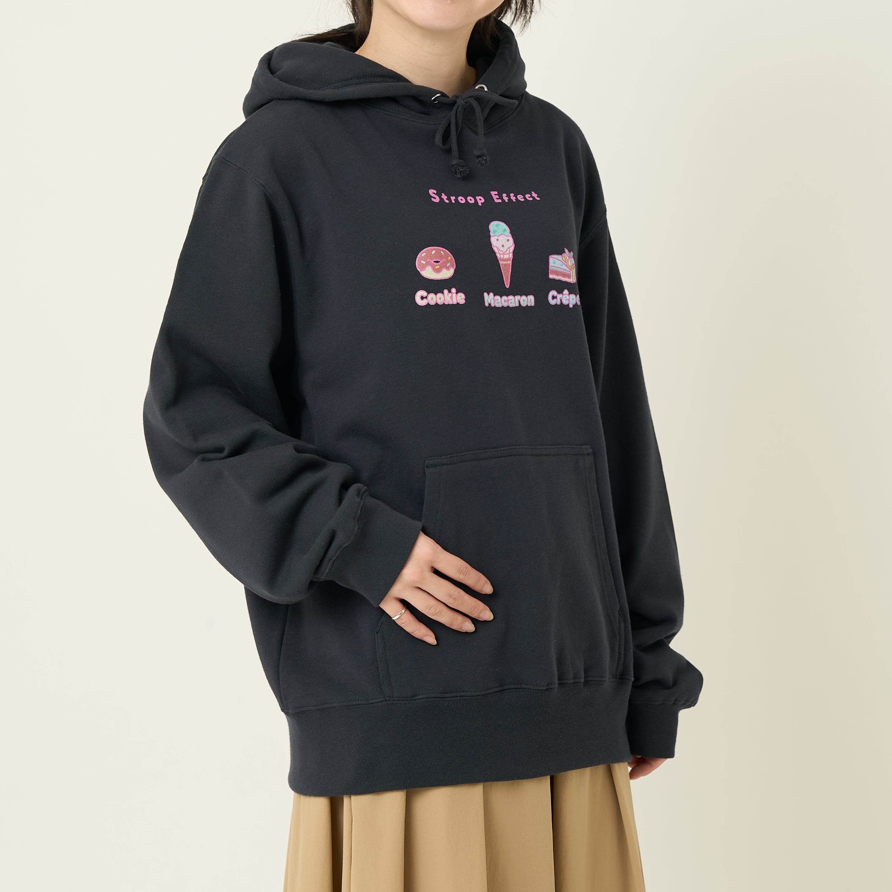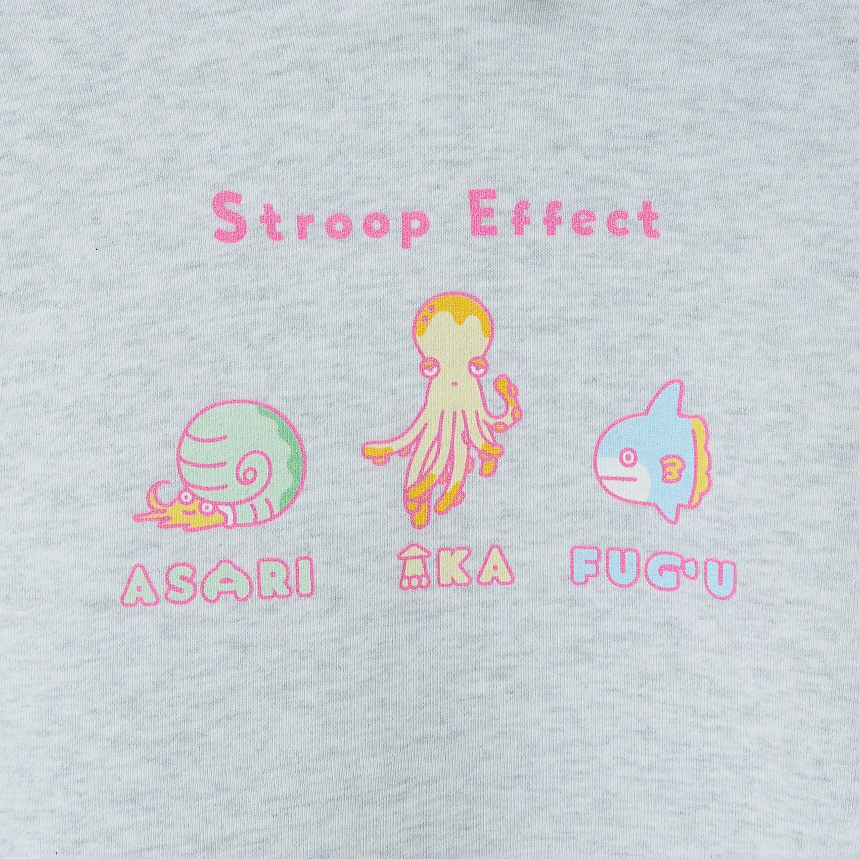 ストループ効果をテーマに、海の生き物やスイーツをデザインしたパーカーです。